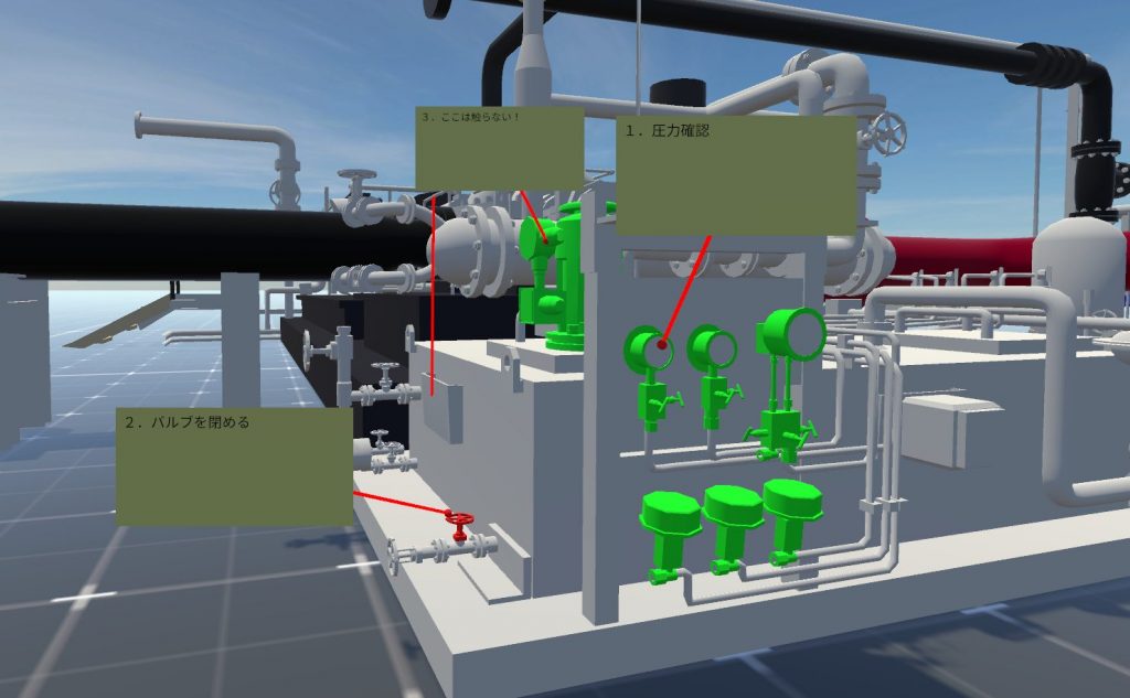 オフィスではQuest2を使ってVR表示させて、教育や事前打ち合わせに活用できます。