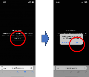 2.で起動したWebARの初期画面でカメラ利用の許諾が必要です。下図の赤丸の部分をタップしてください。