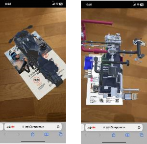 1.で印刷した画像マーカに2.で起動したWebARアプリを起動したスマホのカメラをかざすと3Dコンテンツが表示されます。