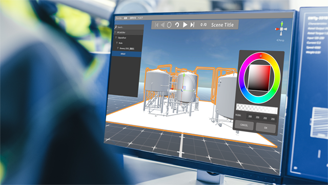 XRLiteEditorは3DCADデータもしくは3Dスキャンデータを読み込み、オブジェクトの移動・色変更・カメラ位置の移動による視点変更・注釈付与の編集を行ってシーンを作成し、そのシーンをまとめたプロジェクトを保存します。