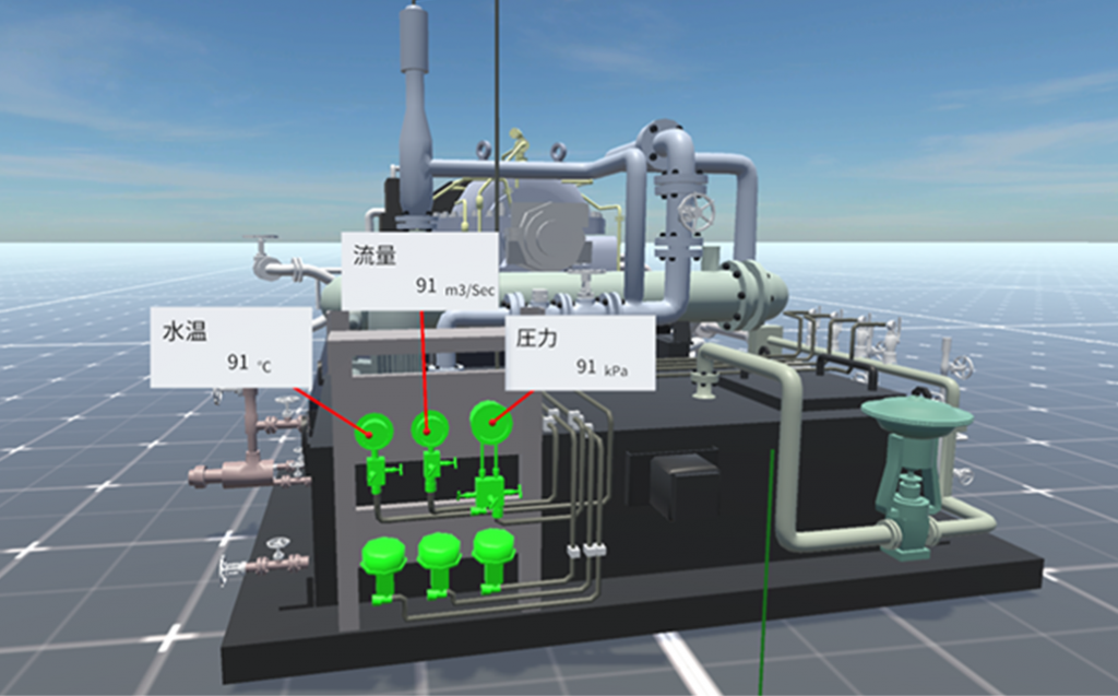 3Dデータに実世界のセンサーの値を重ねて表示し、設備の状態をリアルタイムに把握。